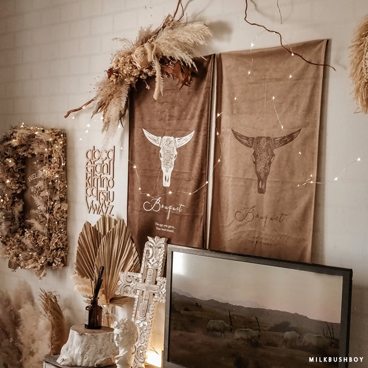 【cow skull】お誕生日おめでとうって言わないタペストリー カウスカル バースデータペストリー スウェード